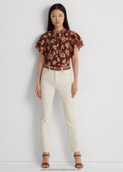 virágos ráncos georgette nyakkendős blúz 2680483804 nők Ralph Lauren barna/narancs/tejszín