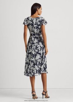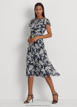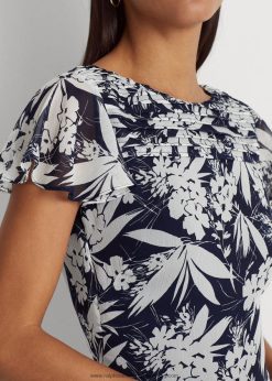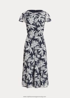 virágos ráncos georgette ruha 2680489556 nők Ralph Lauren sötétkék/fehér