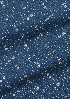 könnyű, ráncos pamutból készült blúz. 20. század eleji újdonság nyomat ihlette virágmotívum. tűszúrás az első és a hátsó járomnál. karkötőig húzott ujjak. egyenes szegély. gyöngyház gombokkal fejezték be.