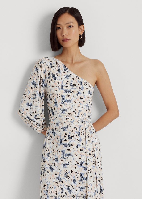 A szezon elbűvölő virágmotívuma eleveníti fel ezt a puha sztreccs dzsörzéruhát, amelyet a kortárs egyvállas sziluett és egy zsebkendőszegély határoz meg. Önálló övvel van kiegészítve, amely kiemeli a derék természetes íveit.