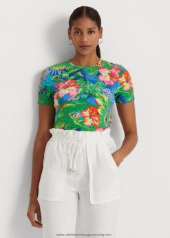 virágos sztreccs pamut póló 2680483845 nők Ralph Lauren zöld/kék multi