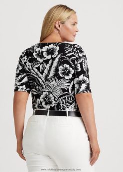 virágos sztreccs pamut póló 2680484526 nők Ralph Lauren fekete-fehér