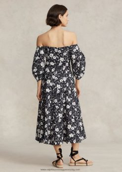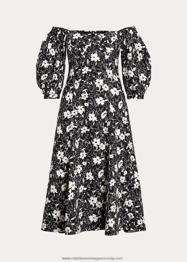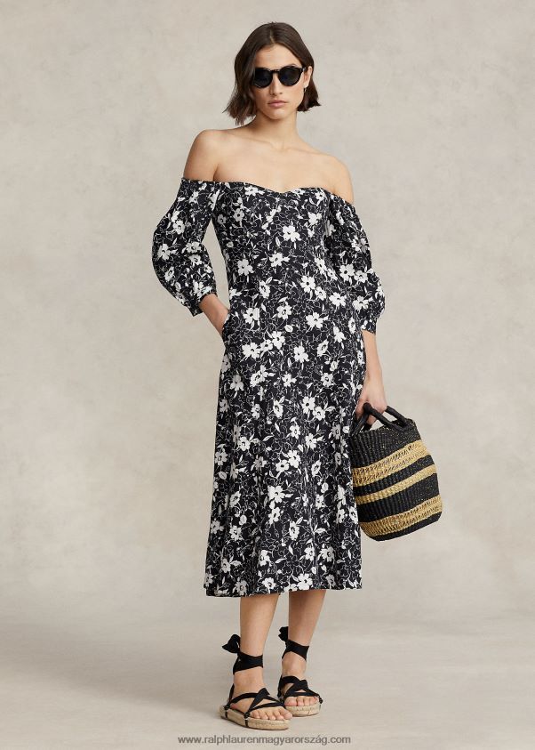 virágos vállszegélyes vászonruha 2680482976 nők Ralph Lauren krém liliom feketén