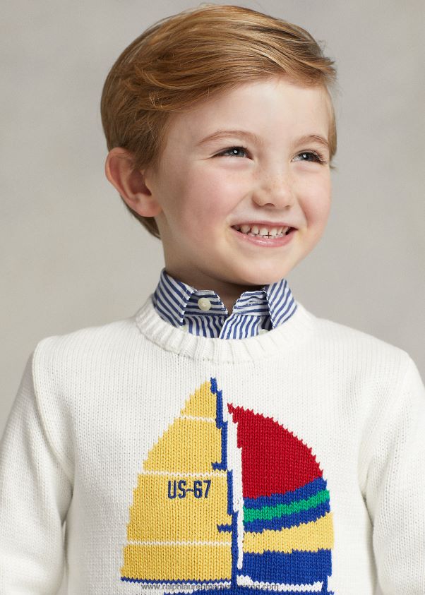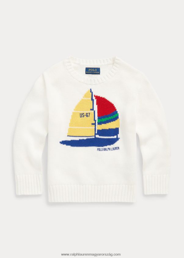 vitorlás pamut pulóver 2680485666 gyerekek Ralph Lauren fedélzetmosó fehér