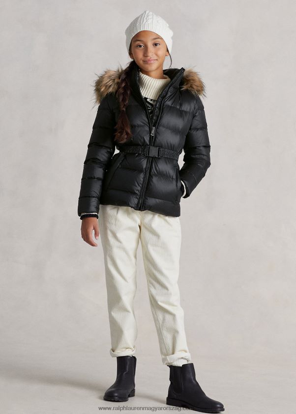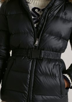 A hidegebb hónapok kötelező darabja ez a kabát, amely meleg, 650-es töltéssel, cipzáras kapucnival és újrahasznosított nylonból készült vízálló héjjal rendelkezik. a levehető műszőrme díszítőelem és a hozzáillő öv nagyobb kényelmet és sokoldalúságot kínál.