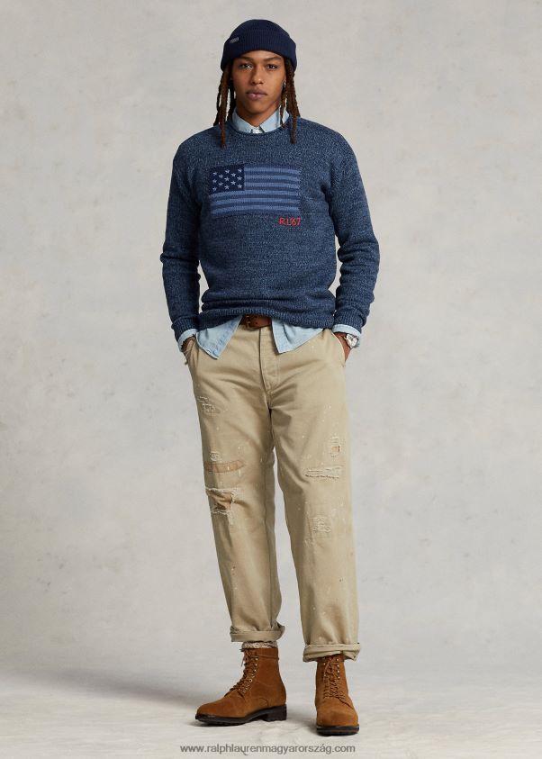 Ralph Lauren ikonikus zászlós pulóverének ez a változata kék tónusú márványos pamutfonalakkal készült. A ralph lauren jobb gyapottal együttműködve javítja a gyapottermesztést világszerte. a jobb gyapot arra tanítja a gazdálkodókat, hogy hatékonyan használják fel a vizet, gondoskodjanak a talaj és a természetes élőhelyek egészségéről, csökkentsék a legkárosabb vegyszerek használatát, és hajtsák végre a tisztességes munka elveit.