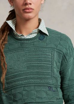 Ralph Lauren ikonikus zászlós pulóverének ruhafestett változata puha pamutból készült, és végig texturált kötött mintával. A kontrasztos javítások és a láncvarrott „póló” hímzések otthoni ihletésűt adnak. A ralph lauren jobb gyapottal együttműködve javítja a gyapottermesztést világszerte. a jobb gyapot arra tanítja a gazdálkodókat, hogy hatékonyan használják fel a vizet, gondoskodjanak a talaj és a természetes élőhelyek egészségéről, csökkentsék a legkárosabb vegyszerek használatát, és hajtsák végre a tisztességes munka elveit.