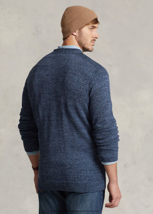 Ralph Lauren ikonikus zászlós pulóverének ez a nagy és magas változata kék tónusú márványos pamutfonalakkal készült. A ralph lauren jobb gyapottal együttműködve javítja a gyapottermesztést világszerte. a jobb gyapot arra tanítja a gazdálkodókat, hogy hatékonyan használják fel a vizet, gondoskodjanak a talaj és a természetes élőhelyek egészségéről, csökkentsék a legkárosabb vegyszerek használatát, és hajtsák végre a tisztességes munka elveit.