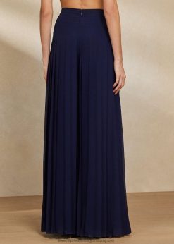 Az időtlenség és a finom olasz kézművesség végső kifejezése, a zelah könnyű sifonból készült, amely légies, elegáns burkolata miatt tekinthető. ez az elsöprő, magas stílus a hullámzó, széles lábú sziluetthez készült, és részletgazdag, éles redőkkel van ellátva, amelyeket a derékban levarrnak, majd a csípő alsó részén szépen elengednek.