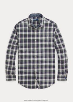 klasszikus fazonú kockás poplin popover ing 2680481271 férfiak Ralph Lauren zöld/sárga multi