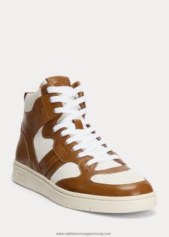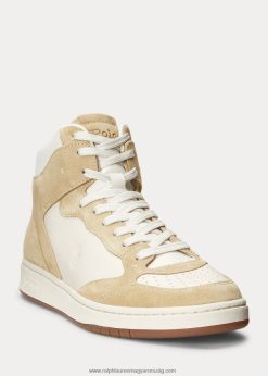udvari bőr-velúr magasszárú tornacipő 2680481987 férfiak Ralph Lauren sötétkék/fehér/sárga