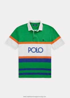 klasszikus szabású csíkos jersey rögbi ing 268048797 férfiak Ralph Lauren sportos zöld multi