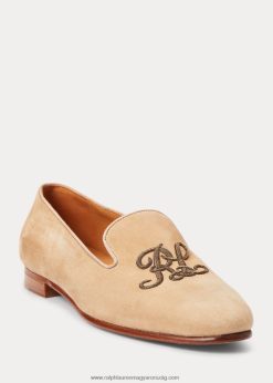 alonzo hímzett kecske-velúr papucs 2680489683 nők Ralph Lauren halvány méz
